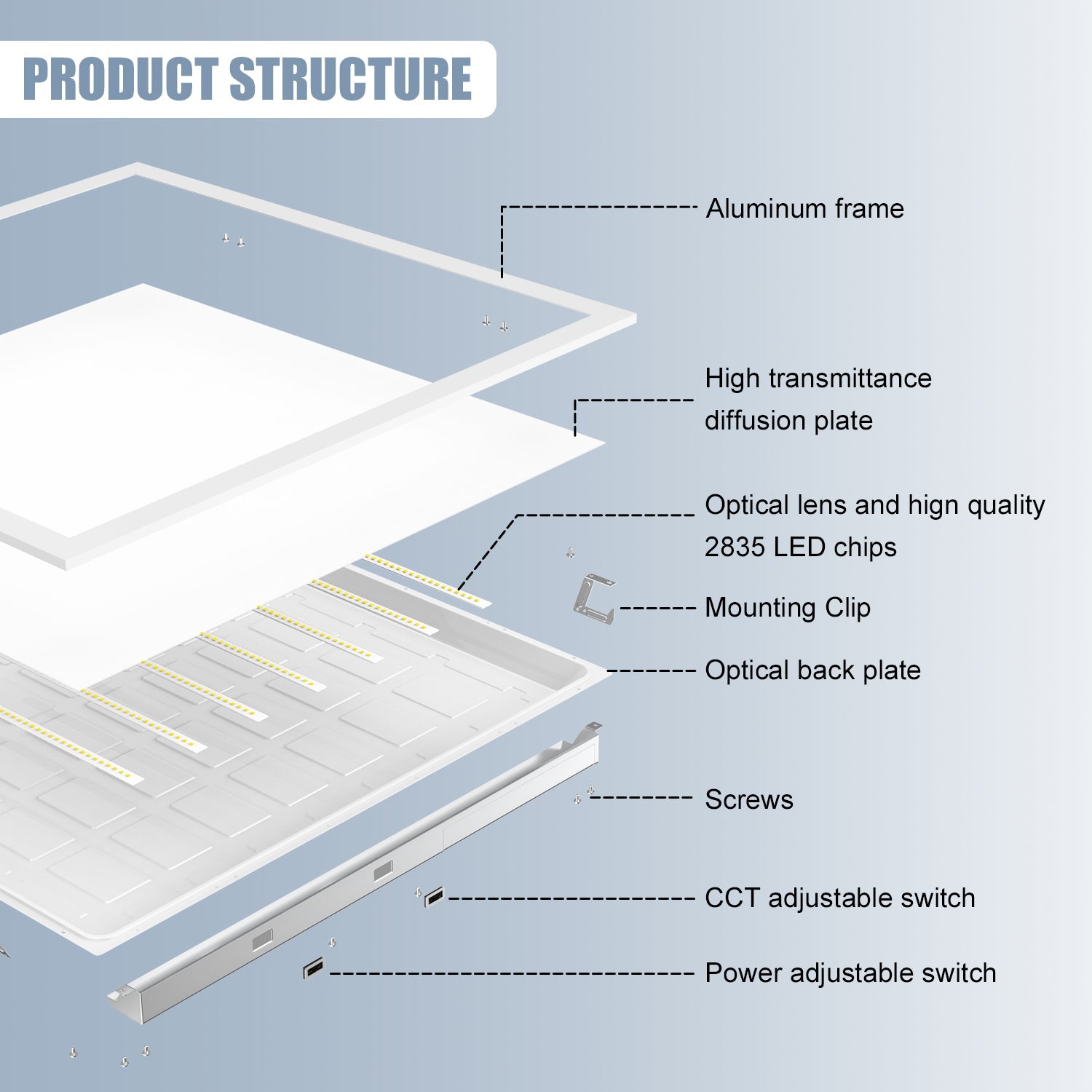 Upgrade your commercial or residential lighting with this 4-Pack of LED Flat Panel Lights. These energy-efficient, backlit LED ceiling panels are designed for drop ceilings, grid ceilings, and other standard installations. Featuring 5 selectable color temperatures (3500K to 6500K), 0-10V dimming, and high-lumen output, these LED panels are the perfect replacement for traditional fluorescent fixtures.