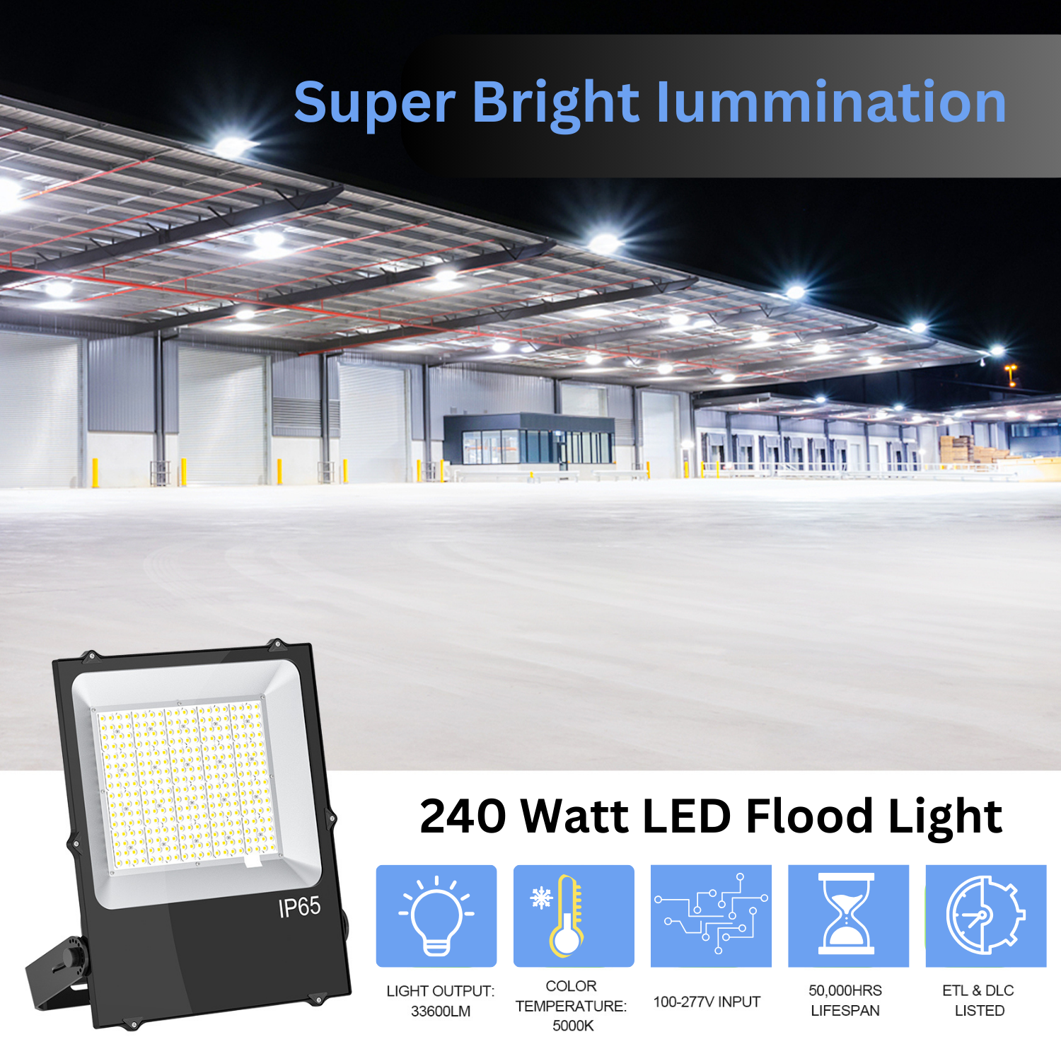 Pro Series 240W LED Flood Light Outdoor IP65 Waterproof 120 Degree Beam Angle 5 Years Warranty