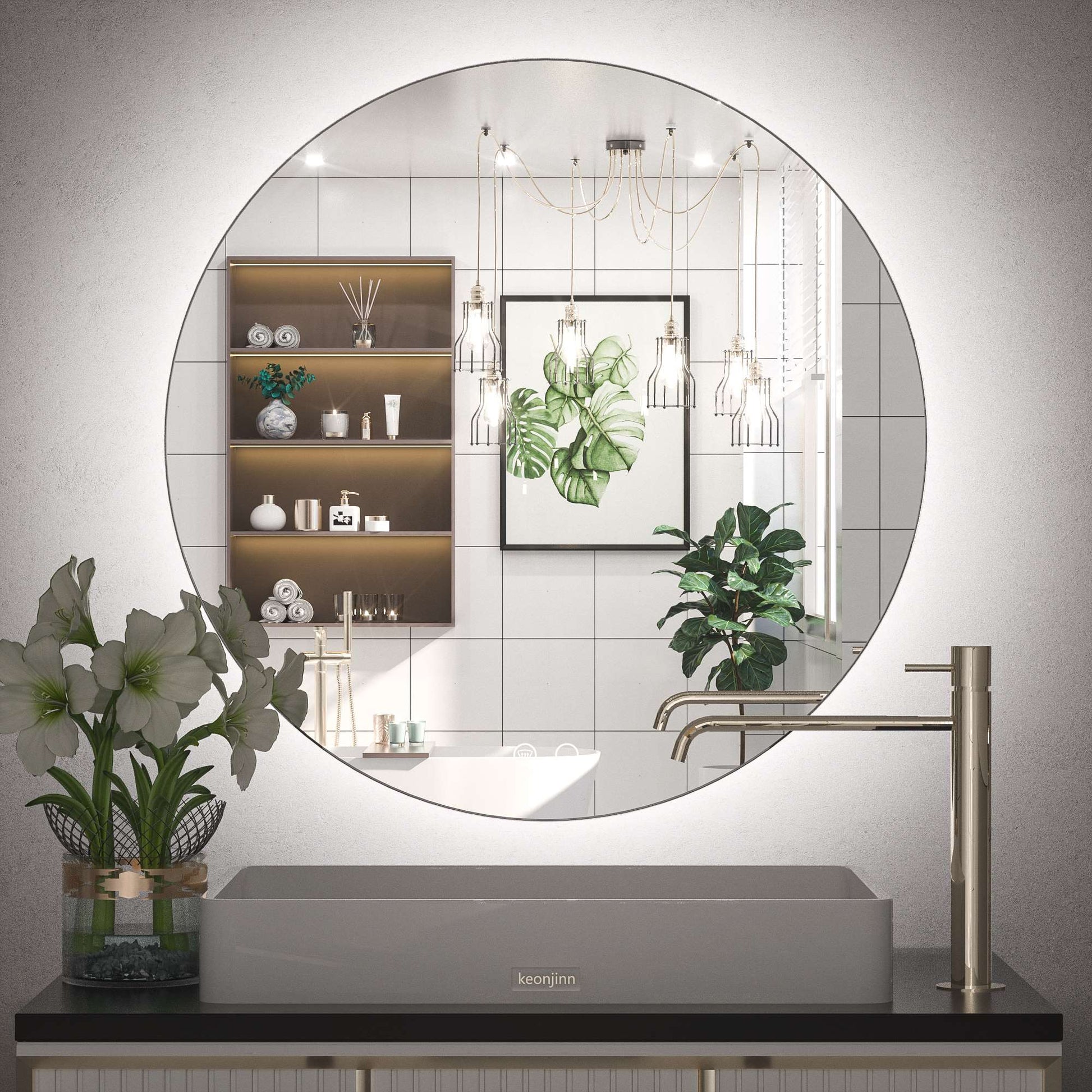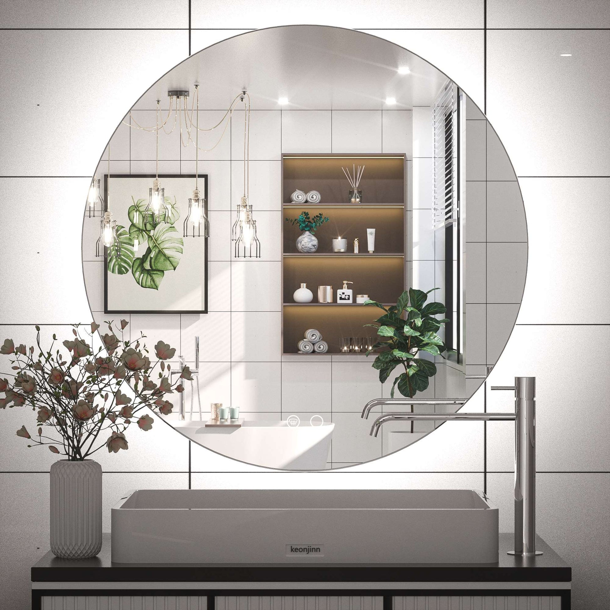 Our moon illuminated mirror is the perfect for bathrooms/any room/hallway/entryway of various interior design styles. Modern, Minimalist, Contemporary, Industrial, etc. No matter the room is big or small, the backlit round mirror would make it be larger and instantly transform your space.